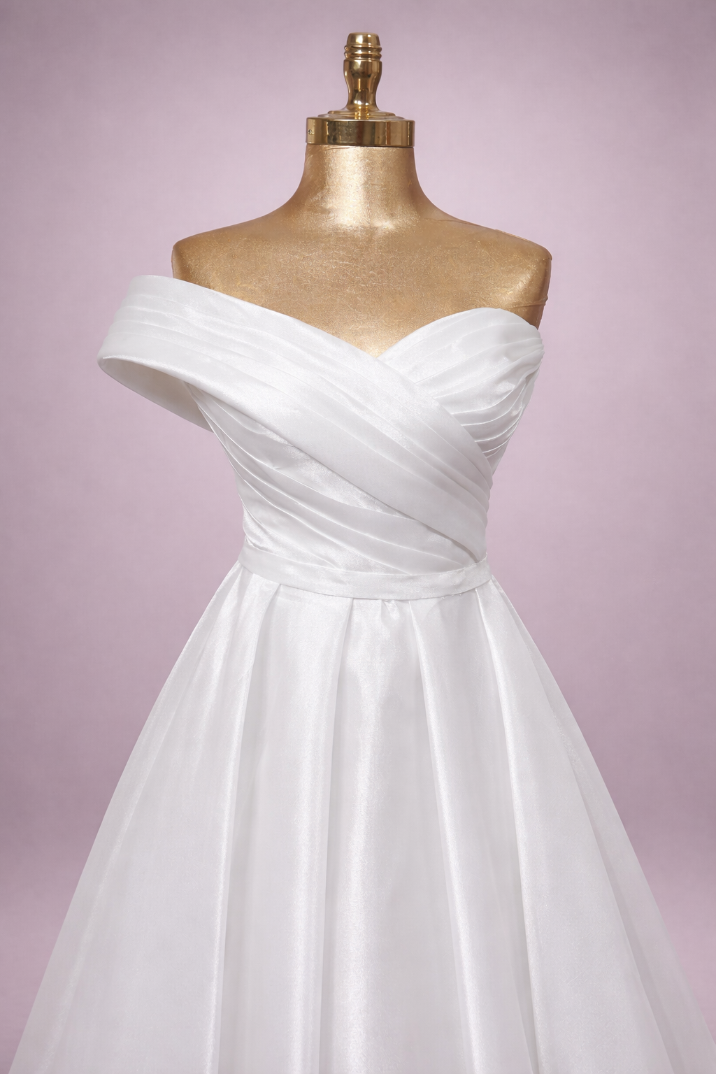 Confectionnée dans un satin délicatement lumineux, cette robe capte la lumière avec subtilité, offrant un rendu à la fois doux et prestigieux. Son bustier croisé met en valeur le décolleté avec finesse, tandis que les manches tombantes viennent habiller les épaules avec une touche romantique et féminine.